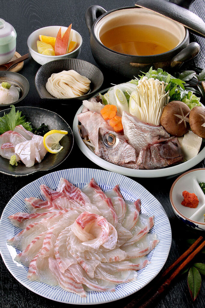 また、艶やかな切り身をしゃぶしゃぶしながら、鯛の旨味がぎゅっと濃縮した「だし」で食べる、鯛そうめんは格別です。